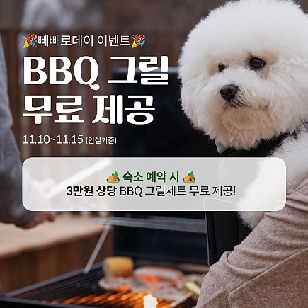 숙소 예약 시, 3만원 상당 BBQ 그릴세트 무료 제공
