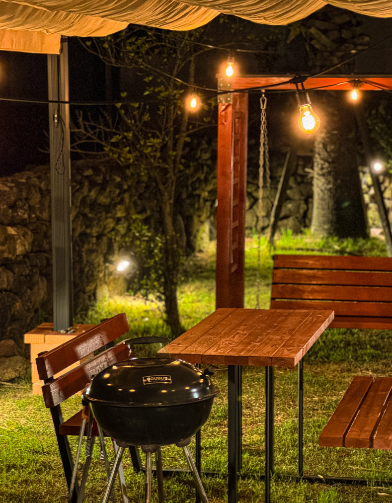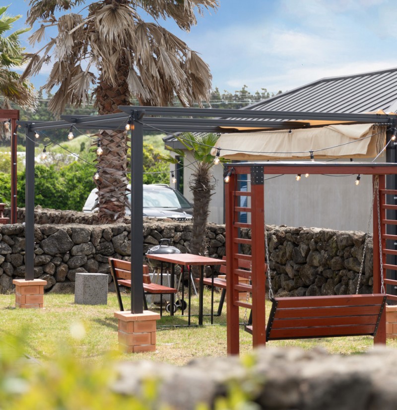 자연 잔디 마당에서 즐기는 야외 바베큐 플레이스
